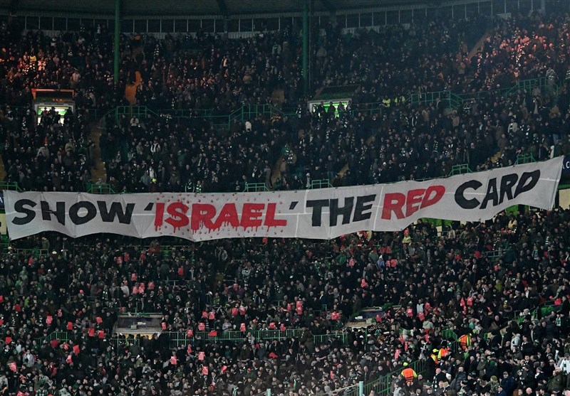 سایت «Scottish Sun» گزارش داد که طرفداران سلتیک در جریان دیدار شب گذشته (چهارشنبه) این تیم مقابل بایرن مونیخ در مرحله پلیآف لیگ قهرمانان اروپا، بنر بزرگی در ورزشگاه سلتیک پارک نصب کردند که روی آن نوشته شده بود «به اسرائیل کارت قرمز نشان بدهید».