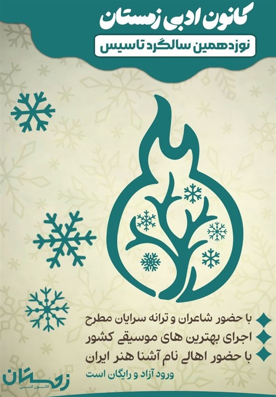 نوزدهمین جشن سالگرد تاسیس کانون ادبی زمستان عصر جمعه سوم اسفند 1402 از ساعت 15 در فرهنگسرای ارسباران برگزار میشود.
