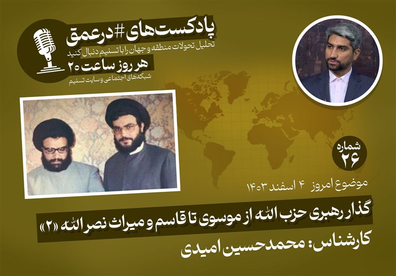 گروه بینالملل خبرگزاری تسنیم ـ بیست و ششمین شماره از پادکست «در عمق» که به بررسی مهمترین روندها، تحولات و همچنین شخصیتها در غرب آسیا میپردازد، روز شنبه 4 اسفند ضبط و منتشر شد. در این شماره «منصور براتی»، برای دومین بار میزبان «محمدحسین امیدی»، کارشناس مسائل لبنان است. با توجه به اینکه این اپیزود ادامه شماره 24 پادکست در عمق به حساب میآید پیشنهاد میکنیم ابتدا اپیزود شماره 24 و سپس این اپیزود را گوش دهید.