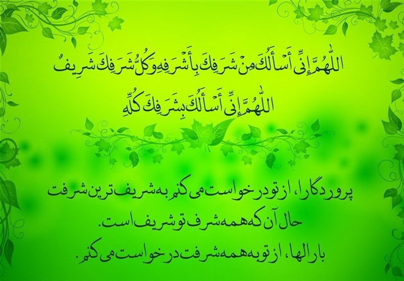 پروردگارا، از تو در خواست میکنم به شریفترین شرفت حال آن که همه شرف تو شریف است. بارالها، از تو به همه شرفت درخواست میکنم.