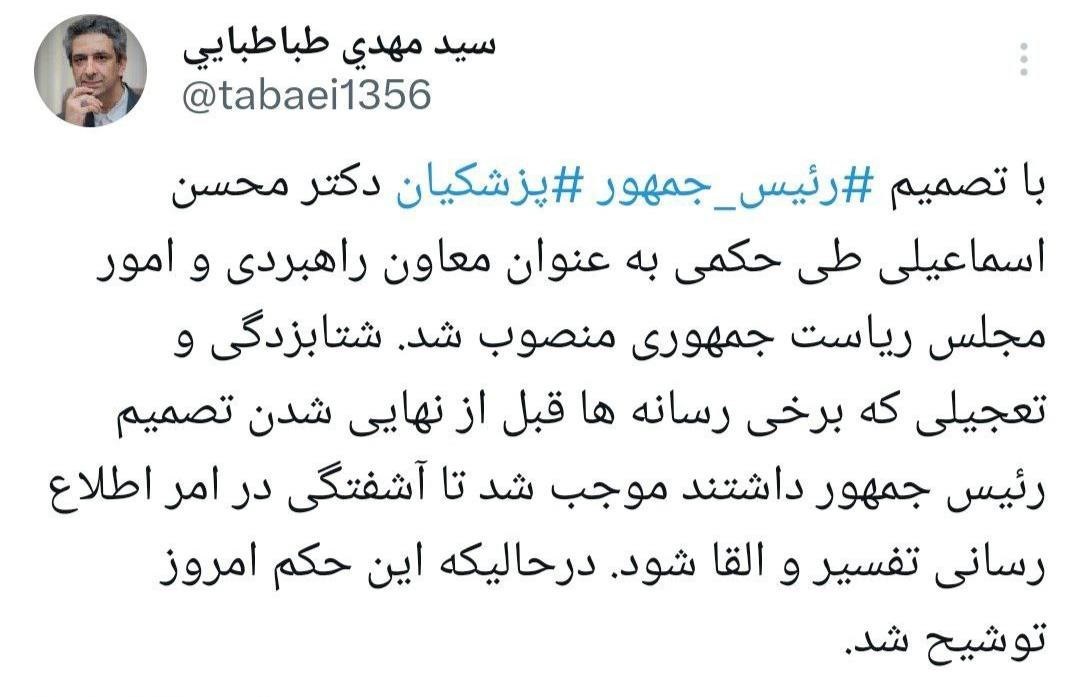 معاون ارتباطات و اطلاع رسانی دفتر رئیس جمهوری علت تایید و تکذیب‌های انتصاب معاون جدید راهبردی را اعلام کرد.
