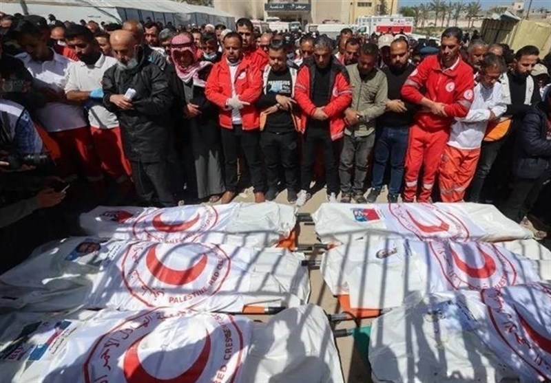 در 30 مارس یعنی 8 روز بعد، هلال احمر فلسطین اعلام کرد که پیکر 14 تن از امدادگران از جمله 8 نفر از تیم هلال احمر، 5 نفر از تیم دفاع مدنی و یک کارمند یکی از آژانسهای سازمان ملل را در رفح پیدا کرده است.