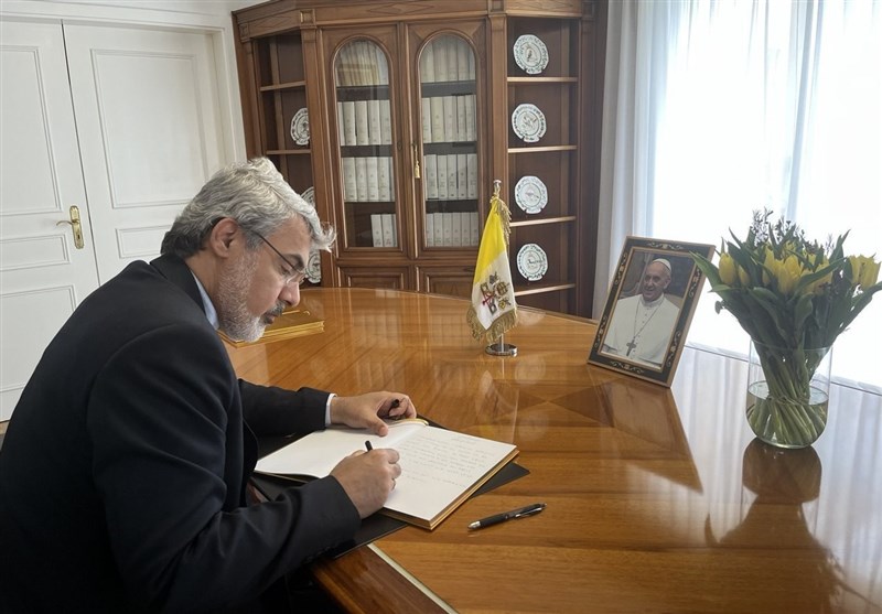 به گزارش گروه سیاست خارجی خبرگزاری تسنیم، علی بحرینی سفیر و نماینده دائم جمهوری اسلامی ایران نزد دفتر سازمان ملل متحد در ژنو روز پنج شنبه 4 اردیبهشت 1404 طی حضور در نمایندگی دائم واتیکان در ژنو، دفتر یادبود درگذشت پاپ فرانسیس پیشوای فقید کاتولیک های جهان را امضاء کرد.