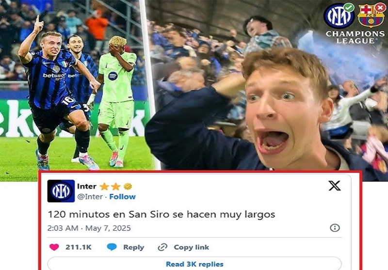 به گزارش خبرگزاری تسنیم، پیروزی 4 بر 3 شب گذشته (سهشنبه) تیم فوتبال اینتر مقابل بارسلونا در ورزشگاه سنسیرو در دور برگشت مرحله نیمه نهایی لیگ قهرمانان اروپا، بازتاب گستردهای در فضای مجازی داشت و با یکسری حواشی نیز همراه بود.