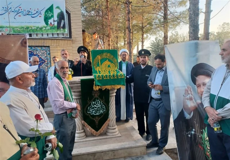 کاروان زیر سایه خورشید با پرچم متبرک رضوی پیامآور نور، امید و آرامش بود و حضور خادمان امام رضا(ع) در کنار گلزار شهدا پیوند عمیق عشق به اهلبیت(ع) و راه ایثار را به زیباترین شکل به نمایش گذاشت.