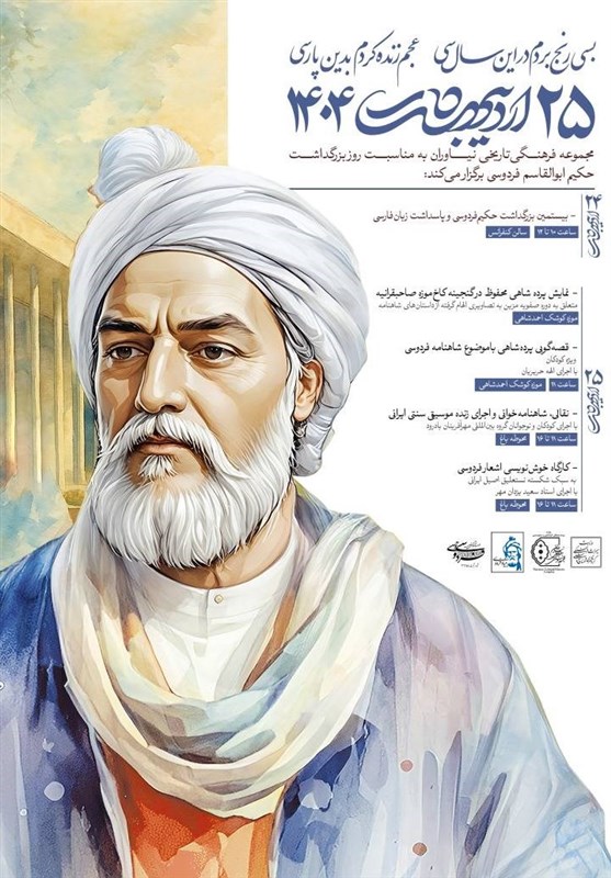 این رویداد با هدف پاسداشت زبان و ادب پارسی، ترویج فرهنگ حماسی شاهنامه و پیوند نسل امروز با میراث کهن ایرانی روزهای چهارشنبه و پنج شنبه 24 و 25 اردیبهشت ماه در فضای موزهای و محوطه باغ تاریخی نیاوران اجرا خواهد شد. فهرست این برنامهها به شرح زیر است: