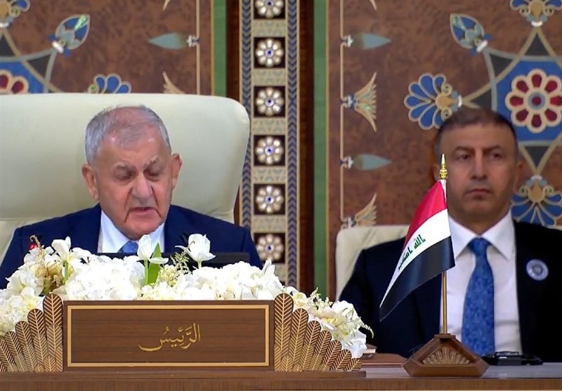 رئیس جمهور عراق در این نشست اظهار داشت: امروز از اینکه عراق ریاست اجلاس سران عرب را به‌عهده می‌گیرد، خرسندیم و مراتب قدردانی عمیق خود را از تلاش‌های ویژه اتحادیه عرب ابراز می‌کنیم.