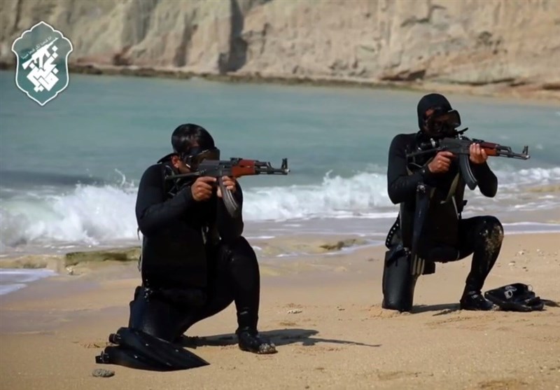 نیروهای یگان ویژه فاتحین تهران، غواصی رزمی و تاخت دریا به ساحل را در منطقه خلیج فارس تمرین کردند.