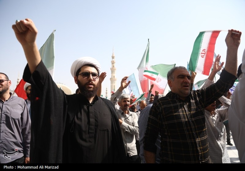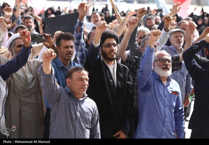 مردم خشمگین با شعارهای مرگ بر آمریکا و اسرائیل خواستار انتقام سنگین و پشیمان‌کننده از رژیم تروریست اسرائیل شدند و شعارهای "انتقام انتقام" سردادند.