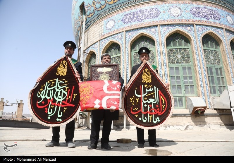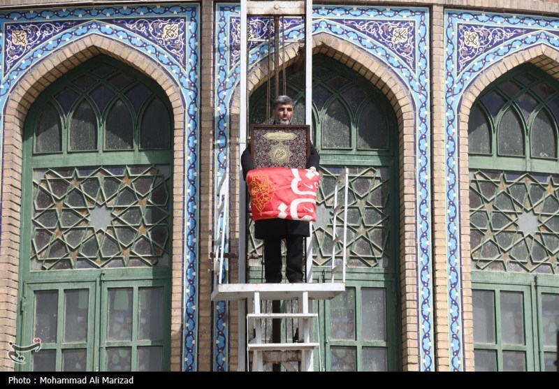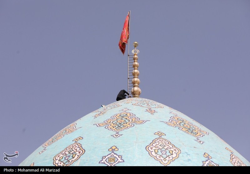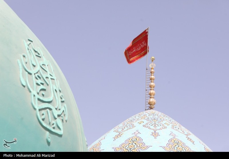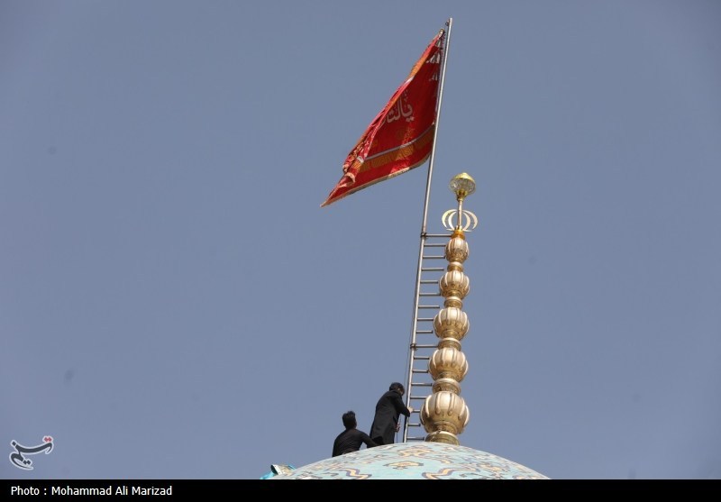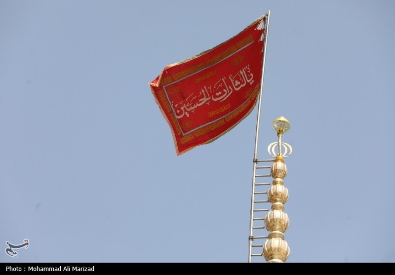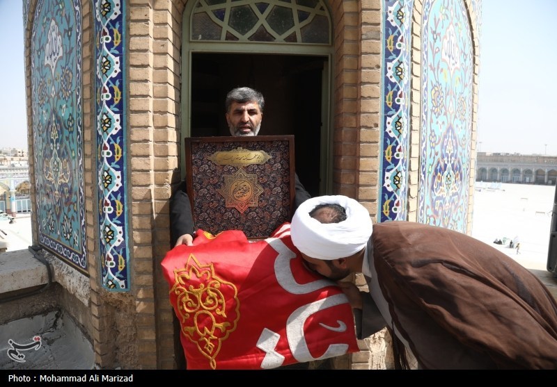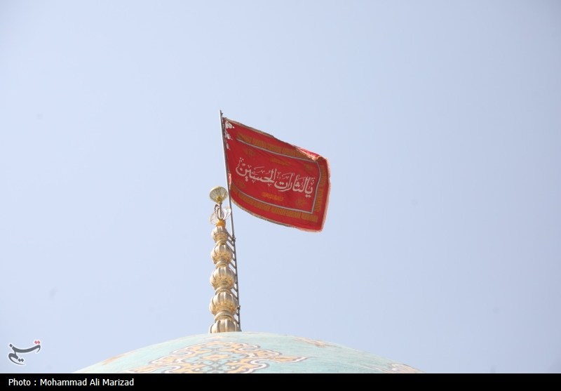 اهتزار پرچم سرخ یالثارات الحسین بر مسجد جمکران+ فیلم و عکس