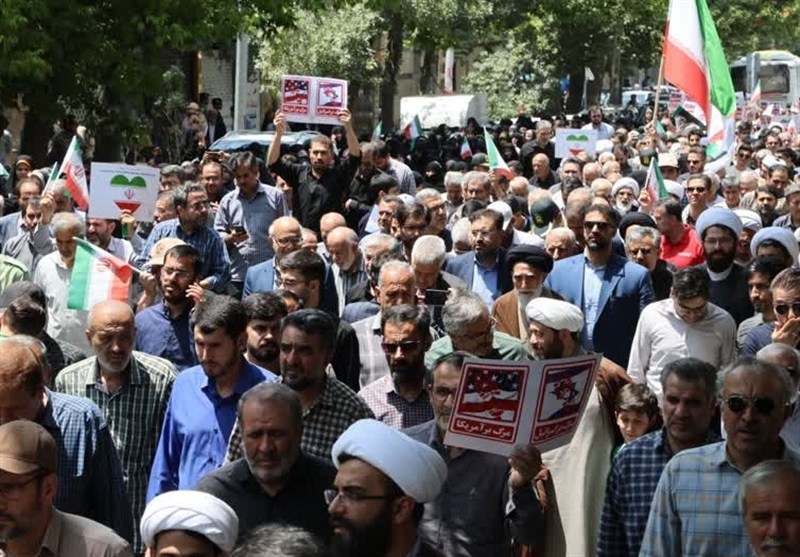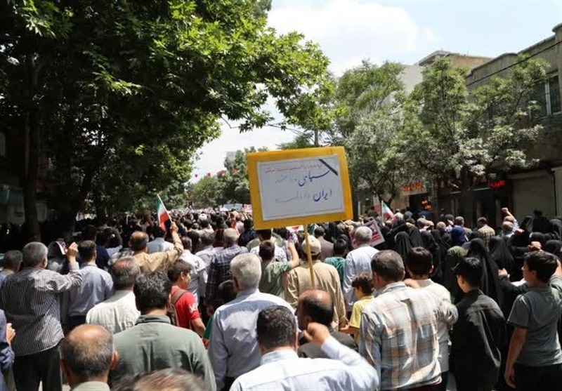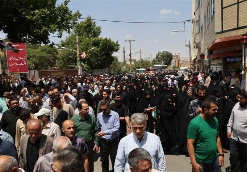 مردم با مشتهایی گره کرده همدردی خود با خانواده شهدا و مجروحین را نشان دادند شعار "مرگ بر اسرائیل" و "مرگ بر آمریکا" امروز از جای جای این تجمع شنیده میشد.