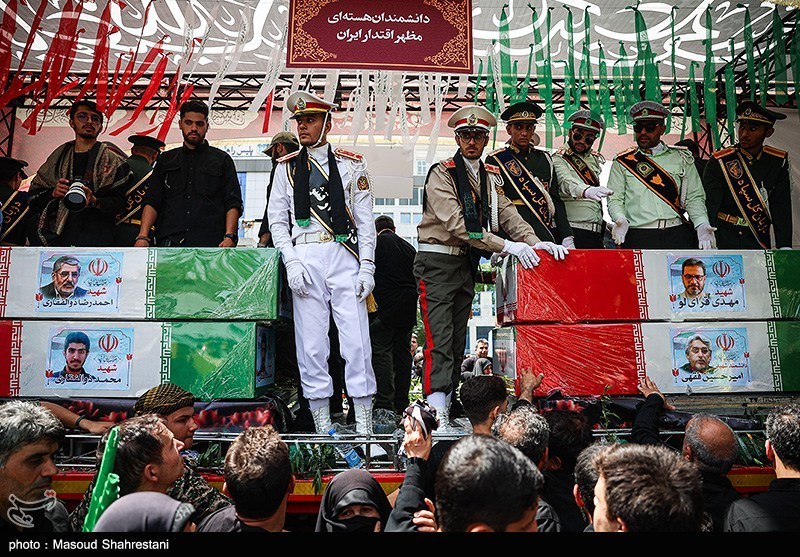 المیادین هم به نوبه خود در پوشش این مراسم اعلام کرد که از صبح امروز شنبه مراسم باشکوه تشییع پیکر شهدای ایرانی آغاز شد و جمعیت باشکوهی در میدان انقلاب اسلامی برای تشییع پیکر 60 شهید که در تجاوزات رژیم تروریست صهیونیستی به شهادت رسیده بودند، جمع شدند.