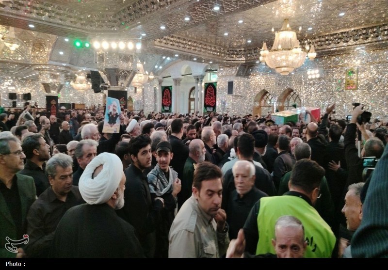 پس از ساعتها انتظار پیکر شهدا وارد آستان مقدس حضرت عبدالعظیم حسنی(ع) شد؛ این فرمانده عالیرتبه سپاه پاسداران انقلاب اسلامی پس از تشییعی باشکوه در تهران، برای اقامه نماز و خاکسپاری به شهر ری منتقل شد.