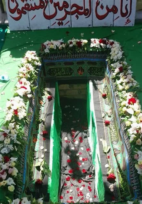 پیکر مطهر شهید در جوار حبیب حرم، شهید سرلشکر حاج حسین همدانی در گلزار شهدای همدان به خاک سپرده شد.