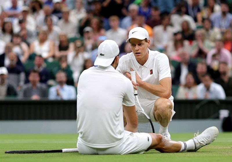 یانیک سینر نیز در جریان مسابقه دچار مشکل شد. در بازی اول، او به‌ طور غیرمنتظره روی چمن افتاد و آرنج راستش آسیب دید و مجبور شد با پزشک مشورت کند. هرچند سینر موفق به ادامه بازی شد، اما به نظر نمی‌رسید کاملاً آماده باشد. هنوز مشخص نیست که با چه شرایطی به مرحله یک چهارم نهایی مقابل بن شلتون خواهد رفت، اما چند روز فرصت برای بهبودی دارد.