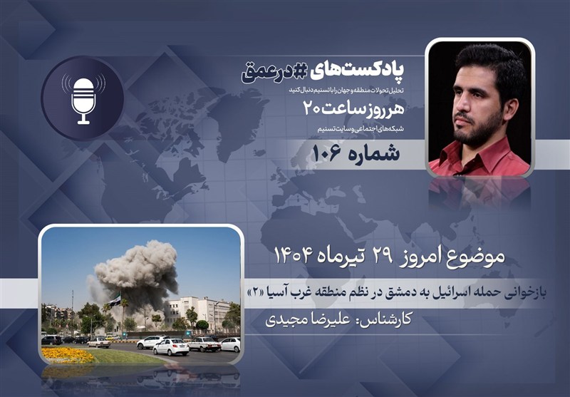 گروه بین‌الملل خبرگزاری تسنیم ـ یکصدوششمین شماره از پادکست «در عمق» که به بررسی مهم‌ترین روندها، تحولات و همچنین شخصیت‌ها در غرب آسیا می‌پردازد، روز یکشنبه  28 تیر ماه 1404 ضبط و منتشر شد. در این شماره «علیرضا مجیدی»، کارشناس مسائل غرب آسیا به بررسی حملات اخیر رژیم صهیونیستی به دمشق و بقیه مناطق این کشور می‌پردازد.