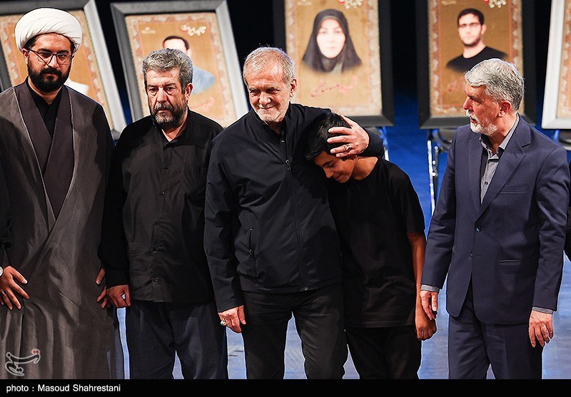 در همین لحظه مسعود پزشکیان رئیسجمهور بدون هیچ اطلاعرسانی، برای تجلیل از خانواده شهدا وارد تالار وحدت شد.