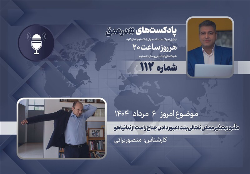 گروه بین‌الملل خبرگزاری تسنیم ـ یکصدو دوازدهمین شماره از پادکست «در عمق» که به بررسی مهم‌ترین روندها، تحولات و همچنین شخصیت‌ها در غرب آسیا می‌پردازد، روز دوشنبه  6 امرداد 1404 ضبط و منتشر شد. در این شماره وضعیت حزب جدید نفتالی بنت در برابر بنیامین نتانیاهو را بررسی می‌کنیم.
