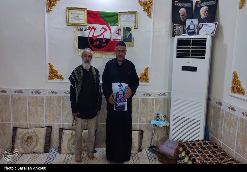 شیخ علی از همرزمان شهید حاج قاسم سلیمانی و شهید ابومهدی المهندس است. مردی که طعم جبهههای جنگ را چشیده و اکنون در جبههای دیگر، با همان روحیه، خدمت میکند. دیوارهای خانهاش پر از عکسهای این فرماندهان شهید است و تصویر رهبر معظم انقلاب اسلامی، در صدر دیوار نشسته است؛ نمادی از پیوند عمیق و دیرینه میان ملت ایران و عراق.