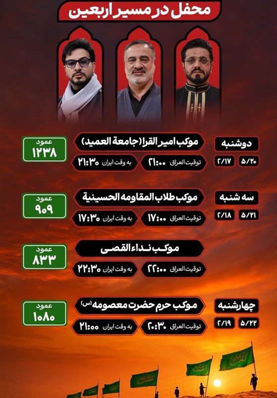 به گزارش خبرگزاری تسنیم، همزمان با فرارسیدن ایام اربعین حسینی و حرکت عظیم عاشقان اباعبدالله الحسین (ع) به سوی کربلای معلی، ویژه برنامه قرآنی «محفل» نیز با حضور میزبانان و داوران خود، در این رویداد معنوی همراه زائران میشود. این حضور، که سال گذشته نیز تجربه شده بود، جلوهای دیگر از پیوند عمیق فعالیتهای قرآنی با فرهنگ عاشورایی را به نمایش میگذارد.