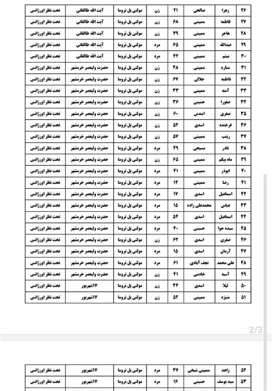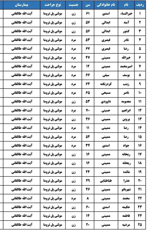 همچنین سازمان اورژانس کشور اسامی مصدومین این حادثه و آخرین وضعیت جسمی آنها را اعلام کرد.