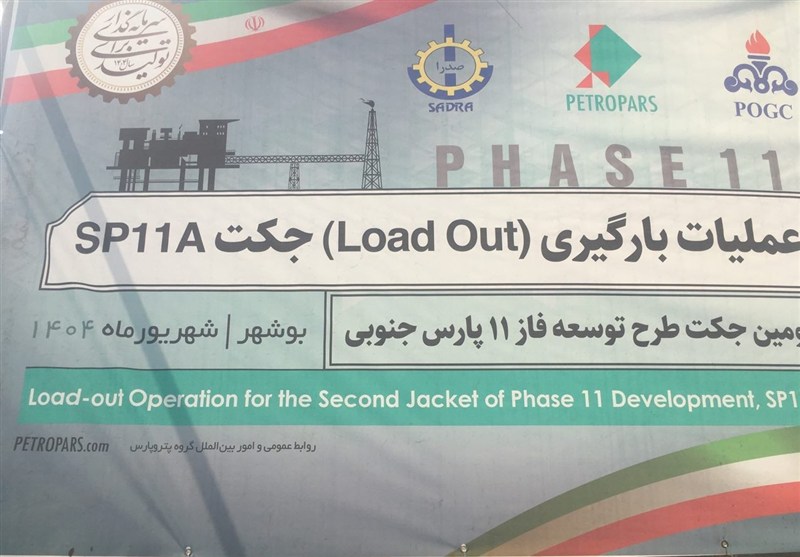 به گزارش خبرگزاری تسنیم از بوشهر، محمدرضا رجایی، مجری طرح توسعه فاز 11 پارس جنوبی، در آیین بارگیری پایه سکوی فاز 11 پارس جنوبی از جزیره صدرا بوشهر گفت: این سکوی دریایی چهار پایه به موقعیت فاز 11 پارس جنوبی منتقل میشود.