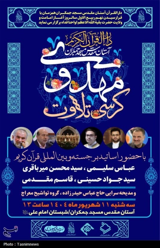 محفل «کرسی تلاوت مهدوی» روز سهشنبه 11 شهریورماه، بلافاصله پس از اقامه نماز عصر، در مسجد امام علی(ع) مسجد مقدس جمکران برگزار و بهصورت زنده از شبکه قرآن و معارف سیما و همچنین شبکه سراسری رادیو قرآن پخش خواهد شد.