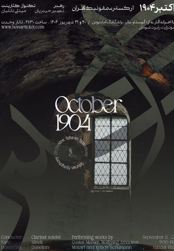 ارکستر سمفونیک تهران به رهبری نصیر حیدریان، کنسرت «اکتبر 1904» را 20 و 21 شهریور از ساعت 21:30 در تالار وحدت روی صحنه میبرد و علاقهمندان میتوانند بلیت آن را از سایت هنرتیکت تهیه کنند.