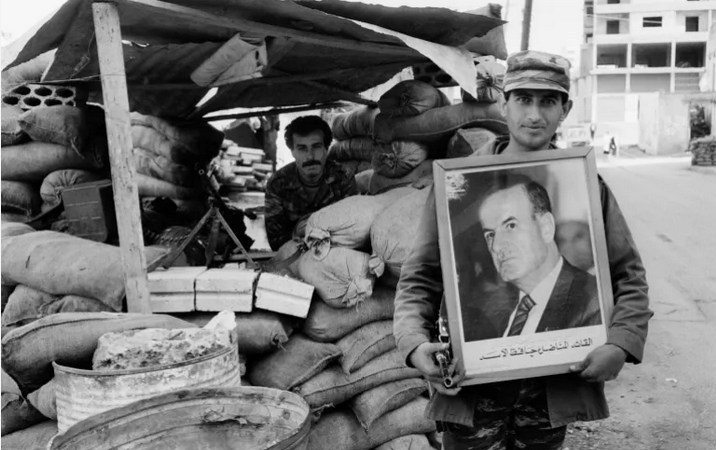 در تصویر، بشیر جمیل، کمیل شمعون، جورج سعادة و... در کنار حافظ اسد و عبدالحلیم خدام حضور دارند
