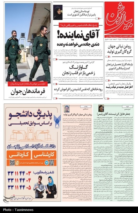 به گزارش خبرگزاری تسنیم از زنجان، تصاویر منتخب صفحات نخست روزنامههای سهشنبه هشتم مهر در استان زنجان منتشر شد.