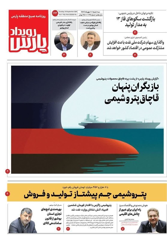 در بخشهای دیگر این مطبوعات استان بوشهر به لیگ جنوب؛ روابط ایران و همسایگان خلیج فارس را رونق میبخشد، بازیگران پنهان قاچاق پتروشیمی در پسِ پرده، بازگشت سکوهای فاز 13 پارس جنوبی به مدار تولید، پتروشیمی جم پیشتاز تولید و فروش با ثبت فروش 8 هزار و 457 میلیارد تومان، زاگرس، قهرمان ششمین المپیاد آتشنشانان وزارت نفت، بهرهمندی لنجهای تجاری استان بوشهر از قانون ساماندهی کالای ملوانی و عبور اقتصاد بوشهر از چالشهای اقلیمی با راه ایران ارائه شده است.