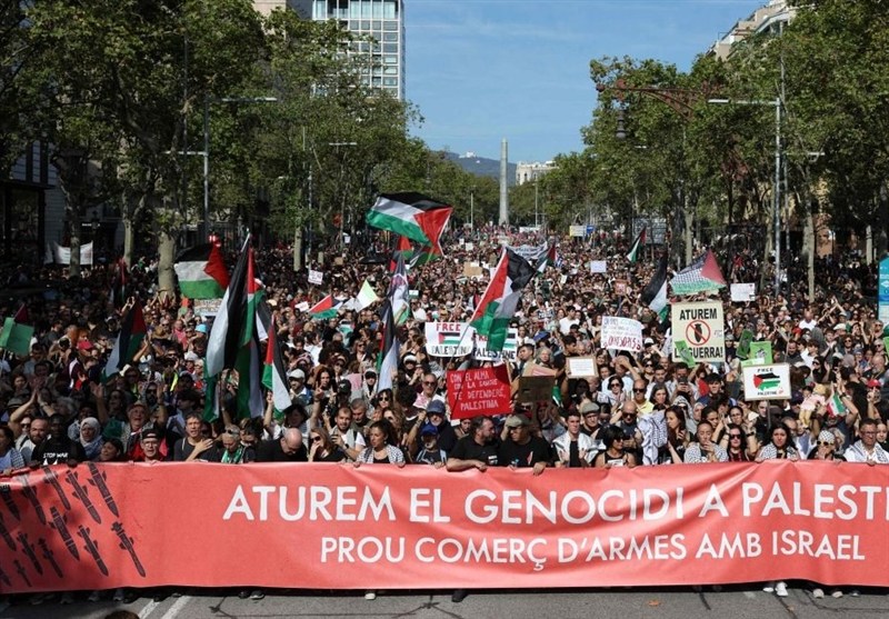 به گزارش گروه بینالملل خبرگزاری تسنیم، دهها هزار معترض به جنایات رژیم صهیونیستی روز شنبه در خیابانهای بارسلونا راهپیمایی کردند.