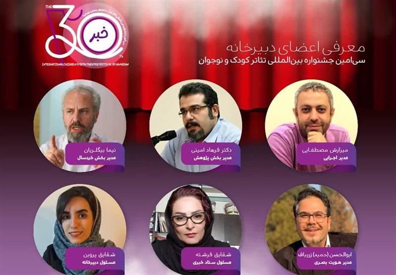 به گزارش خبرگزاری تسنیم از همدان، با حکم آزاده انصاری دبیر جشنواره، میرآرش مصطفایی (مدیر اجرایی)، دکتر فرهاد امینی (مدیر بخش پژوهش)، نیما بیگلریان (مدیر بخش خردسال)، سیدابوالحسن (حمید) زریباف (مدیر هویت بصری)، شقایق فرشته (مسئول ستاد خبری) و شقایق پروین (مسئول دبیرخانه) به عنوان اعضای دبیرخانه منصوب شدند. جشنواره با شعار «کودک امروز، روایت تازه، صحنه فردا» از 14 تا 20 آذرماه 1404 در شهر همدان برگزار میشود.