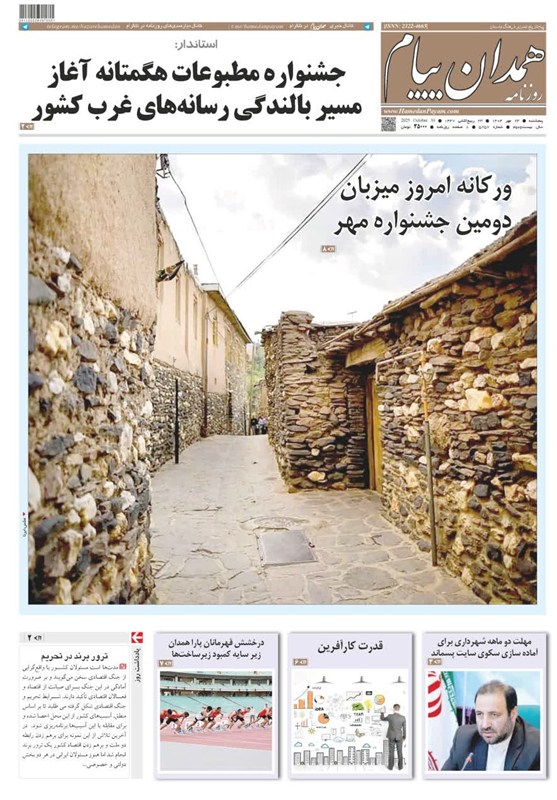 به گزارش خبرگزاری تسنیم از همدان، تصاویر منتخب صفحات نخست روزنامههای پنجشنبه بیستوچهارم مهرماه در استان همدان منتشر شد. این صفحات نخست، نمایانگر مهمترین اخبار، تحولات و رویدادهای اجتماعی، سیاسی، اقتصادی و فرهنگی استان و کشور هستند و نگاه رسانهها را به مسائل روز همدان منعکس میکنند.