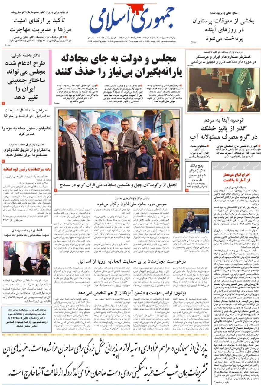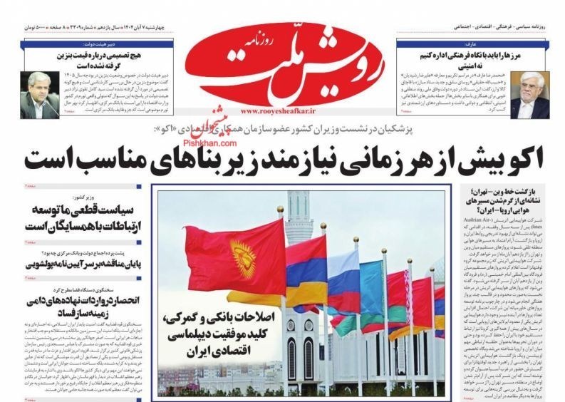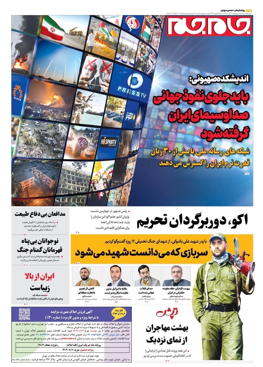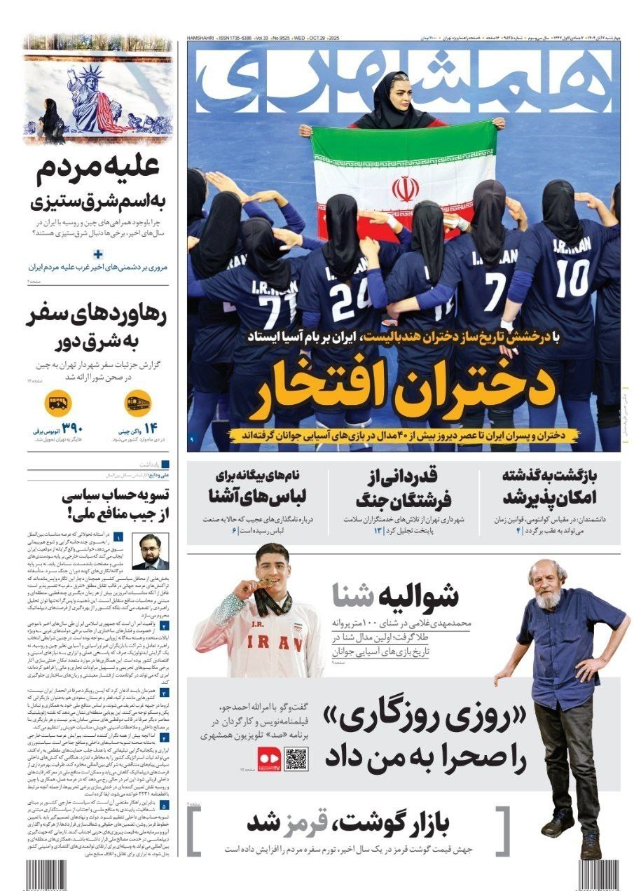 صفحه اول مطبوعات چهارشنبه7آبان/هور دیگر عظیم نیست!