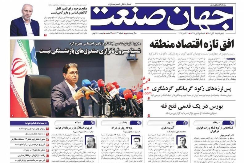 تصاویر منتخب صفحات نخست روزنامه‌های چهارشنبه 7 آبان منتشر شد.