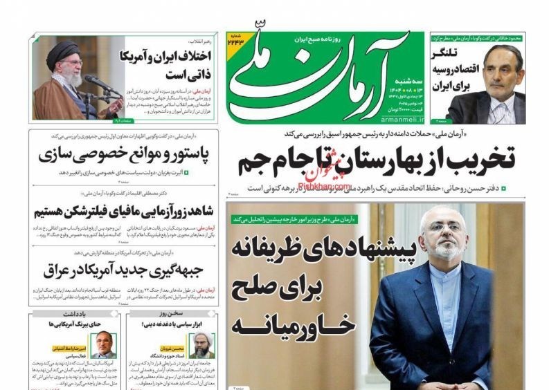 صفحه اول مطبوعات سه شنبه13آبان/نظم منطقه ای علیه نظام آمریکایی
