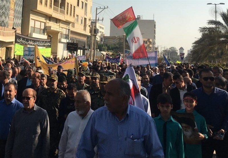 به گزارش خبرگزاری تسنیم از بوشهر همزمان با 13 آبان، اقشار مختلف مردم، دانشآموزان، دانشجویان، اقشار مختلف مردم اعم از زن و مرد و مسئولان بوشهر از میدان قدس تا میدان شهید رئیسعلی دلواری با در دست داشتن پلاکاردها و سردادن شعارهای ضد استکباری، ضمن ابراز انزجار از سیاستهای سلطهطلبانه آمریکا و رژیم صهیونیستی، وحدت و مقاومت ملت ایران را نمایان کردند.