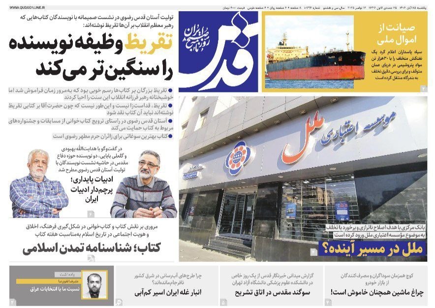 صفحه اول مطبوعات یک شنبه 25 آبان/کتاب؛ شناسنامه تمدن اسلامی