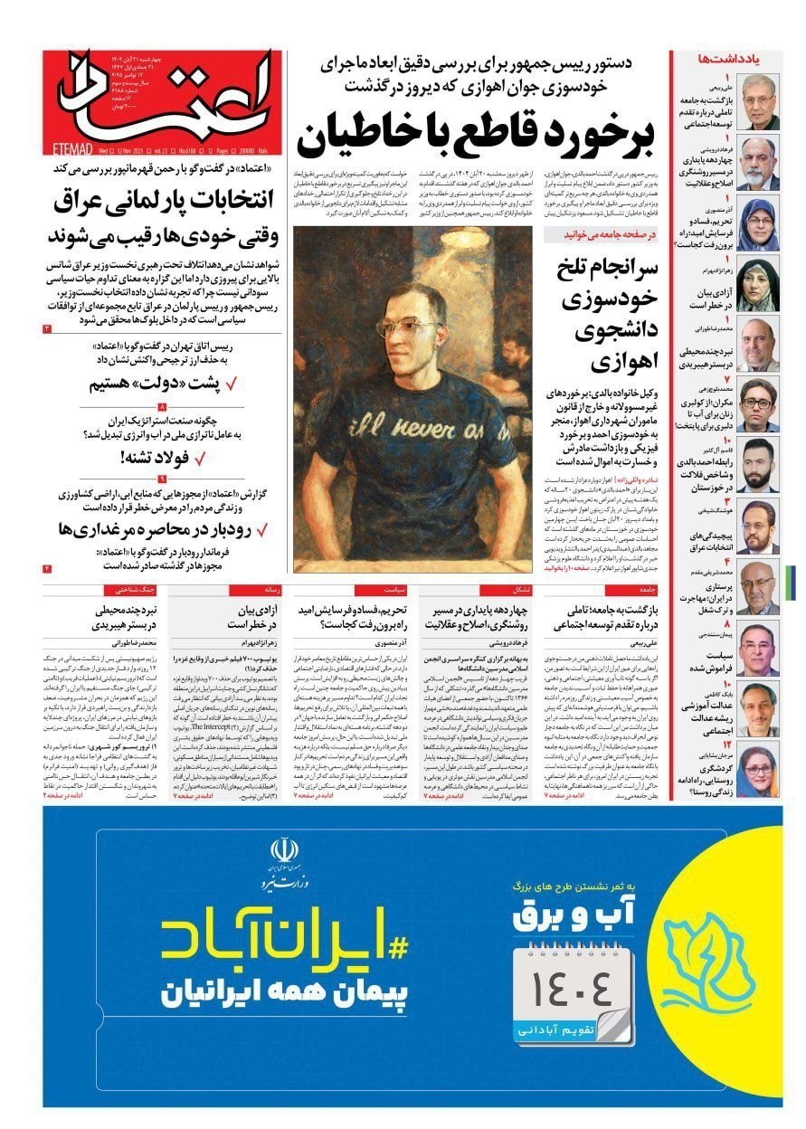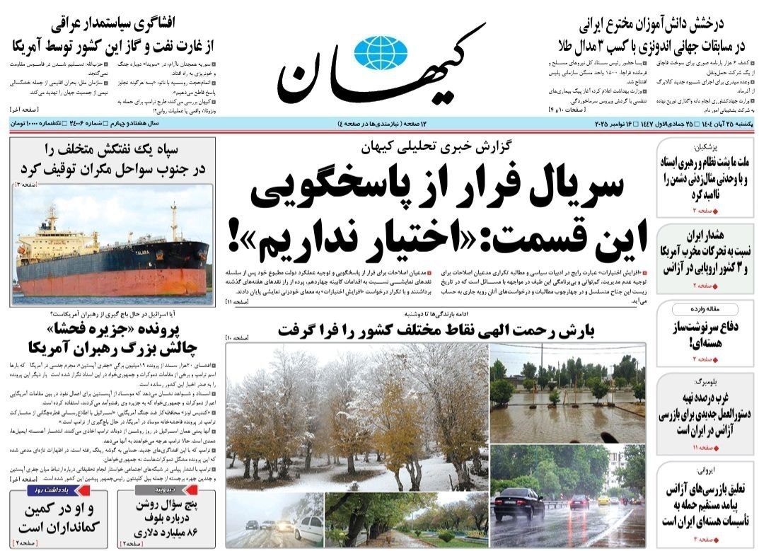 تصاویر منتخب صفحات نخست روزنامه‌های یک شنبه 25 آبان منتشر شد.