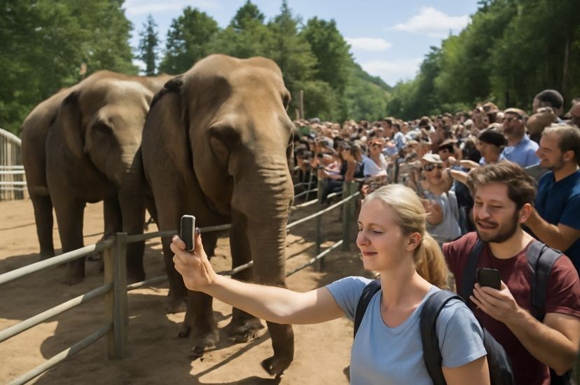 در آلمان، گزارش سازمان FOUR PAWS پرده از واقعیتی تلخ برداشته است: استفاده از فیلها و ببرها برای عکسهای سلفی و سواری گردشگران. این حیوانات معمولاً یا از طبیعت ربوده میشوند یا از بدو تولد در اسارت نگه داشته شده و با روشهای خشونتآمیز تربیت میشوند.