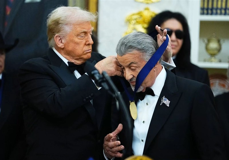به گزارش خبرنگار فرهنگی خبرگزاری تسنیم، روز گذشته در مراسمی ترامپ رئیس جمهور جمهوری خواه آمریکا، مدال افتخاری را بر گردن سیلور استالونه انداخت. استالونه که البته نامش را هم ترامپ بلد نبود بر زبان بیاورد و دوبار به اشتباه او را «سیلوستر «اسلای» سالون» میخواند، بازیگر بود که ابتدا در فیلمهای مستهجن بازی کرده بود و بعد وارد دنیای سینما شد.