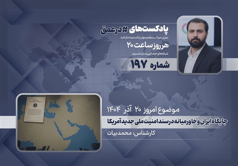 گروه بینالملل خبرگزاری تسنیم ـ یکصدونودهفتمین شماره از پادکست «در عمق» که به بررسی مهمترین روندها، تحولات و همچنین شخصیتها در غرب آسیا میپردازد، روز چهاشنبه 19 آذر 1404 ضبط و منتشر شد. «محمد بیات»، کارشناس مسائل خاورمیانه در این اپیزود دلالتهای سند جدید امنیت ملی آمریکا برای منطقه غرب آسیا و نیز ایران را بررسی کرده است.