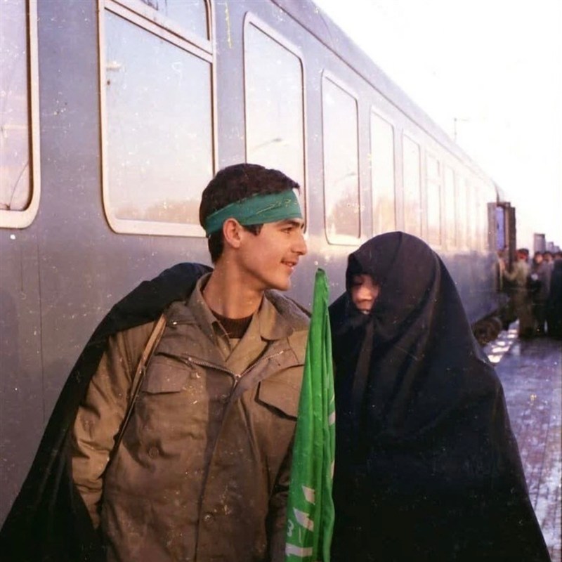 رزمنده شهیدی که همراه خانواده اش آمدند تا به جبهه عزام شود. اوایل دهه 60- راه آهن تبریز