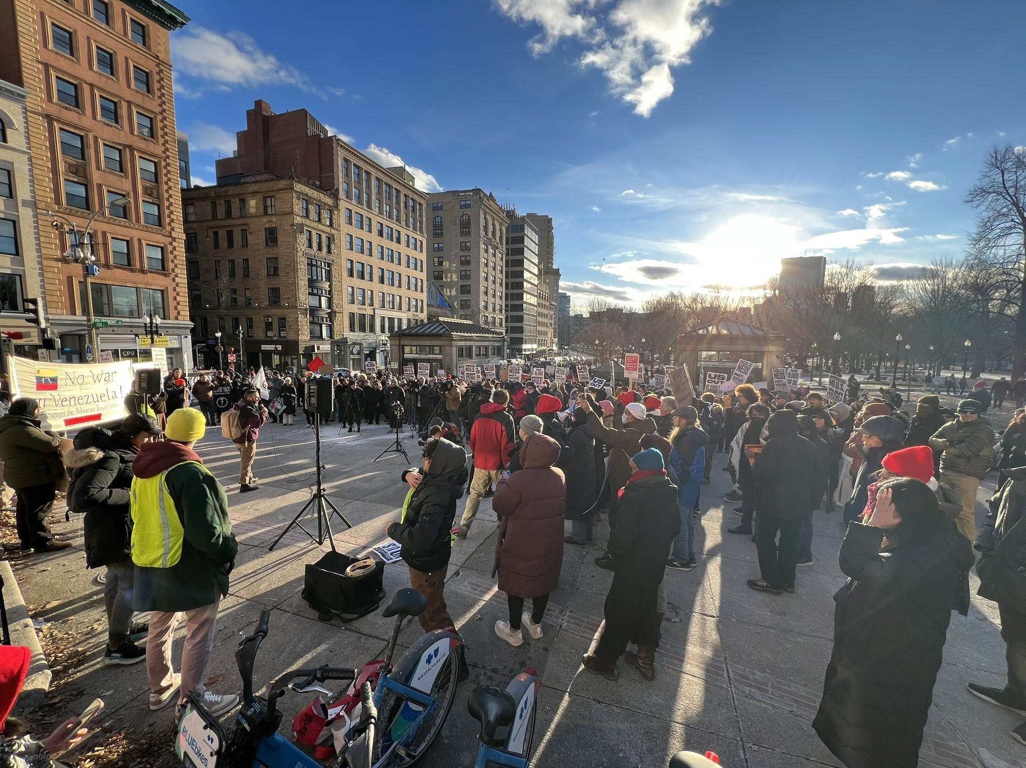 اعتراضات مشابهی در بوستون برگزار شد و معترضان در بوستون کامن گرد آمدند و علیه «عملیات نظامی آمریکا» و «ربودن مادورو» اعتراض کردند. گروههای ضدجنگ تجمعاتی در لسآنجلس، شیکاگو، فیلادلفیا و سیاتل نیز برگزار کردند.