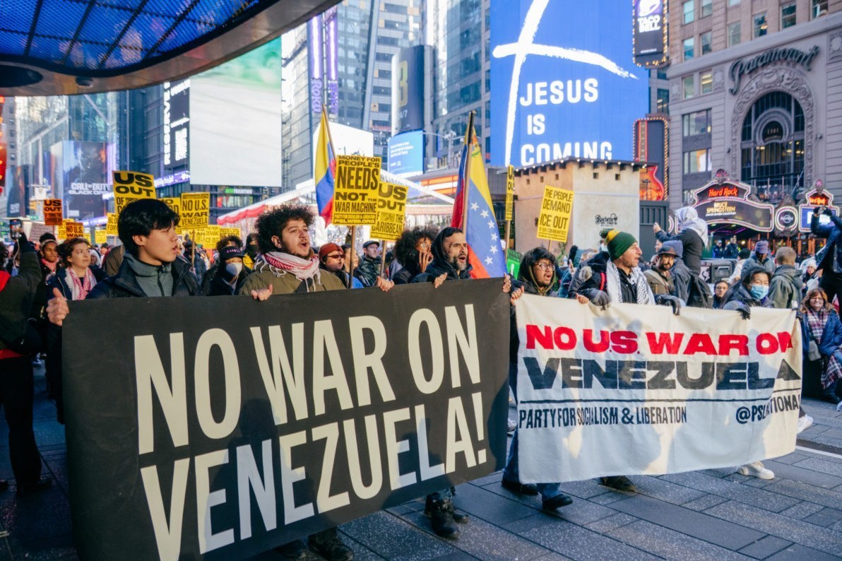 در نیویورک، میدان تایمز شاهد تجمع پرشوری بود، جایی که معترضان با تصاویر مادورو و شعار «ایالات متحده رئیسجمهور ونزوئلا را ربود!» اعتراض خود را اعلام کردند. ویدیوهایی که توسط خبرنگاران منتشر شد، نشاندهنده سوزاندن پرچم آمریکا و درخواست آزادی مادورو بود.
