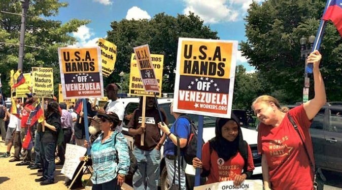 در آمریکا، واشنگتندیسی کانون اعتراضات بود، معترضان مقابل کاخ سفید تجمع کرده شعارهایی مانند «دونالد ترامپ و ایالات متحده، بزرگترین تهدید جهان امروز» سر دادند و پلاکاردهایی علیه «ربودن مادورو» و «بمباران ونزوئلا» در دست داشتند.