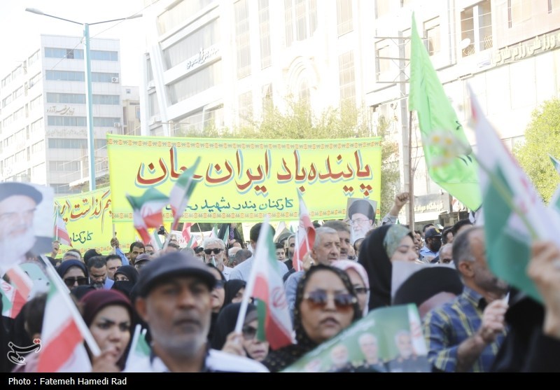 مردم بندرعباس از ساعت 14 از میدان دانشگاه آزاد تا چهارراه نخل ناخدا مسیری که در آن شب‌های گذشته عوامل آمریکایی و صهیونیستی اقدام به انجام برخی حرکات تروریستی و اغتشاش و آتش زدن اموال عمومی و هرج و مرج کرده بودند راهپیمایی حماسی برگزار کردند و علیه این گونه اقدامات ضد امنیت ملی شعار سر دادند.