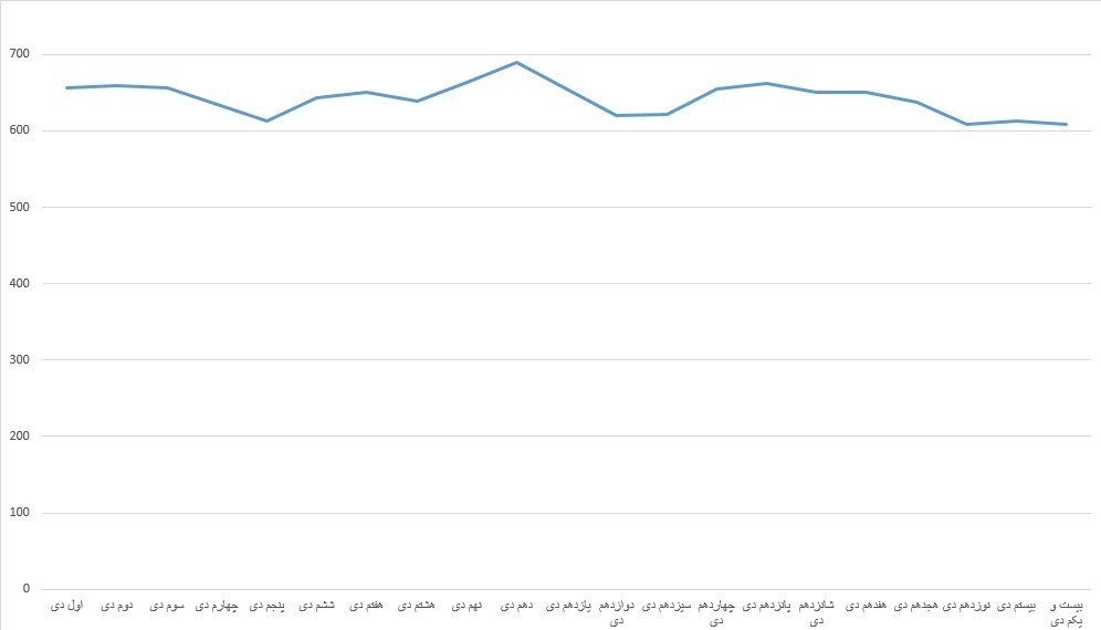در نمودار زیر، نوسانات مصرف گاز خانگی در دیماه (از ابتدای ماه تا روز بیستویکم) جمعآوری و ارائه شده است.