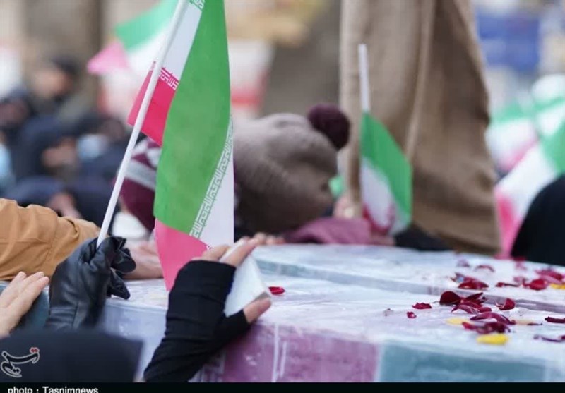 در میان این دریای خروشانِ عزاداران، جلوهی خاصی به چشم میخورد؛ تابوت کوچک اما سنگین شهید متولی که بر دوش مردان پاکباز شهر قرار داشت، با پارچههای سبز، قرمز و سفید پوشانده شده بود. پرچم سه رنگ جمهوری اسلامی ایران که با افتخار بر بالین شهید اهدا شده بود، در بادِ سرد زمستان میلرزید و همچون پرچمی پیروزمند در میدان جنگ، میرقصید. این تصویر باشکوه، نمادی از عهد و پیمان مردم با آرمانهای این شهید بود که خونش زیر پرچم ایران اسلامی جاری شد تا امنیت و اقتدار میهن به خطر نیفتد.